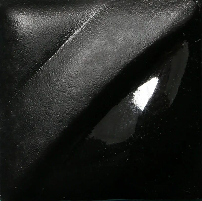Jet Black Velvet Underglaze is a cool black color that is smooth and velvety at cone 05, darkens at cone 5, and becomes darkest black and slightly glossy at cone 10. A clear glaze deepens and accentuates the underglaze significantly at any temperature.